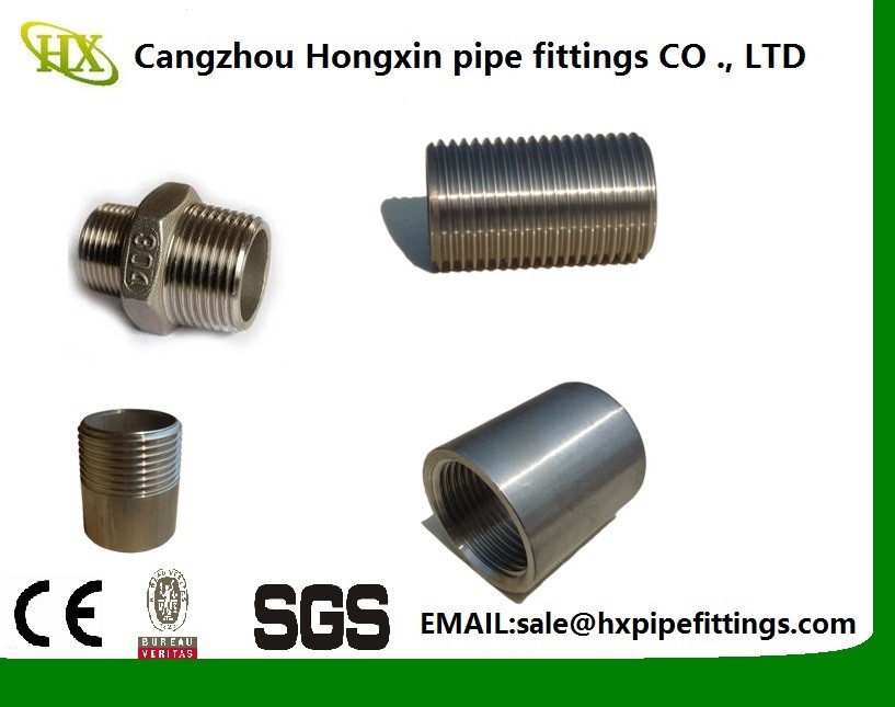 সরবরাহ 304 316 316Lস্টেইনলেস স্টীলপাইপ ফিটিং ব্যারেল নাক/ডাবল থ্রেড স্তনবৃন্ত,
